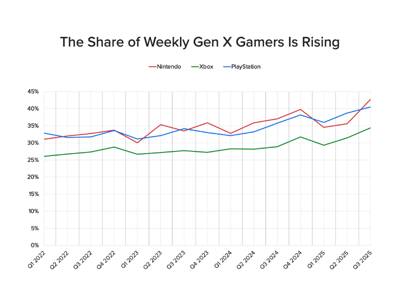 Gen X is leaning more console-curious, Morning Consult tracking shows Gen X purchase consideration trending up across the “big three." (Morning Consult)