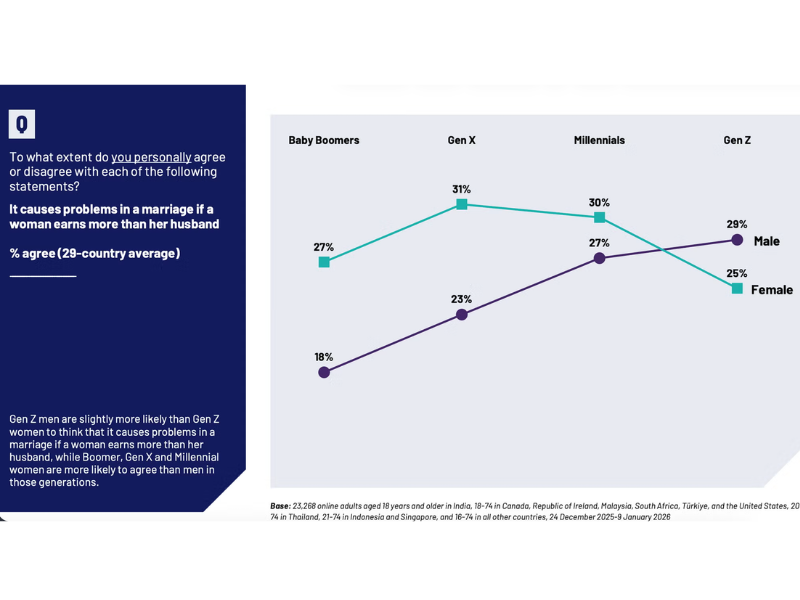 A new King’s College London–led global survey (covered by Esquire on March 6) found widening generational splits on gender-equality attitudes, with 31% of Gen Z men agreeing that a wife should always obey her husband. (Esquire)
