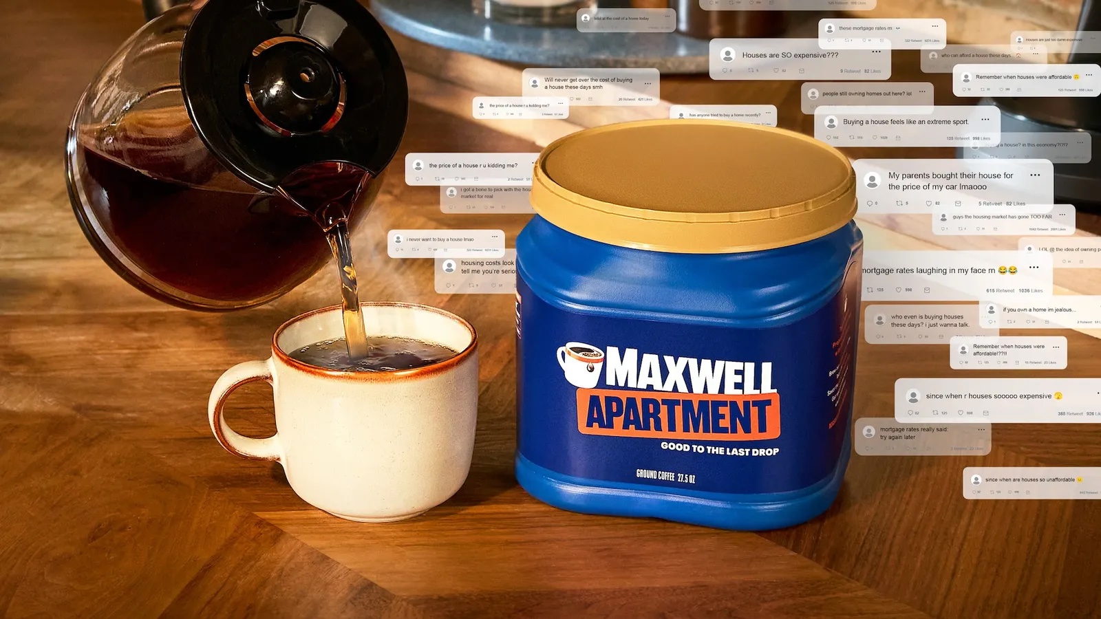 Poking fun at the modern housing economy, Maxwell House cheekily rebranded as “Maxwell Apartment” in a limited-time campaign offering a year’s supply of coffee (12-month “lease”) for under $40. (Marketing Dive)